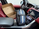 A new high-end Coach chest bag. Coach West 20 blue and white striped monogram print and leather chest bag. Small size for men. Charcoal black monogram print with blue and white stripes. High-definition hardware logo and a custom lining. Smooth zipper, ultra-smooth edges, exquisite workmanship, and meticulous attention to detail! A must-have for men. Dimensions: 19.5 x 35 x 8 cm. Comes with an airplane gift box.