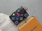 Color: Black Size: 11X9M 12378 Lou Coussin wallet is made of soft sheepskin leather with a classic Monogram pattern embossed on it, creating a fluffy effect. The exquisite square shape hides ample space, with a card slot, a bill compartment and a side zippered coin pocket . The pink embossed design makes it more eye-catching.