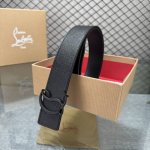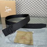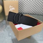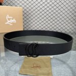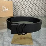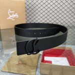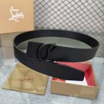 Comes with packaging box. 3.8cm wide Christian Louboutin men's Ricky signature logo buckle black belt with black base, double-sided cowhide.