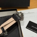 embellished with a hand-made logo heart jewel buckle, inlaid with pearl decoration, with a dot buckle below the buckle, and the belt surface is made of cowhide leather. The belt lining is also made of cowhide leather. Made in Italy