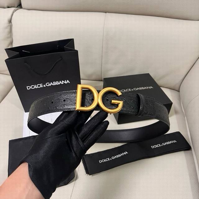 / Dg, Width 4.0 Cm Dolce & Gabbana New Men's Ostrich-Patterned Belt, Featuring A N