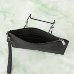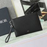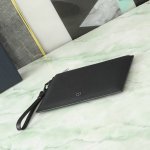 This A5 clutch is an elegant and minimalist accessory. Crafted from black grained calfskin leather, it features a metal-coated brass Cd Icon logo on the front. The zippered compartment features a phone pocket and four card slots. Can be carried by hand or carried inside the bag.