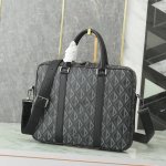 Briefcase Black Cd Diamond canvas and black grained calfskin leather. Official