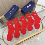 Comes with packaging, one box contains five pairs of Dior and Gucci red festive socks, same style as in department stores, unisex embroidered high socks, new arrivals simultaneously with department stores, super soft and comfortable, a hot-selling item from the CD series, a must-have for trendsetters, super easy to match.