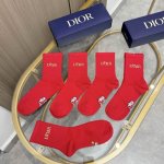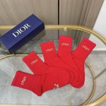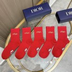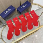 Comes with packaging. One box contains five pairs of Dior red and festive New Year socks, same style as the official website, mid-length socks with gold-stamped lettering! Ribbed cuffs with embroidered brand abbreviation lettering and Instagram decorations. Same style as those in department stores, high-end street style, a must-have for trendsetters, super easy to match.