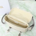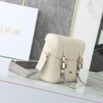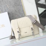 This messenger bag, a new addition to the Fall 2024 men's collection, features a flap. Its modern and sleek design embodies Dior's haute couture spirit and further enriches the Dior Hit The Road collection. Dior Gravity-effect leather, exquisitely embossed with a classic motif, is applied to beige calfskin, showcasing the exceptional craftsmanship of the Dior ateliers. The flap features an aluminum buckle embellished with the Christian Dior signature. Accessorized with two Christian Dior nylon jacquard straps, the bag offers ample compartments for everyday essentials and an adjustable shoulder strap. This practical design complements casual attire for a sophisticated look. Nylon interior with main compartment with flap decorated with the CD logo. Interior slip pocket with mini aluminium buckle and adjustable Christian Dior signature nylon jacquard and calfskin leather shoulder strap. Dior signature in metallic brass on the front. Dior signature embossed inside.