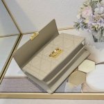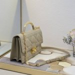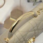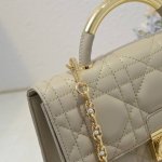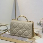 Opening Dior's new collection with an elegant and fashionable aesthetic, it features oversized cannage stitching, a stiff antique gold-finish metal top handle engraved with the