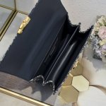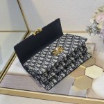 Christian Dior Paris logo, and a flap decorated with a Cd buckle embellished with resin beads. The silhouette is sewn with a triangular gusset, with two spacious compartments and a slip pocket to store various daily items. The design is elegant, and the adjustable and detachable chain shoulder strap is composed of a gold-finish metal Cd link embellished with resin beads, which can be carried by hand, on the shoulder or cross-body.