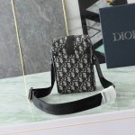 . This vertical flap messenger bag is a new addition to the Summer 2025 men's collection. Its modern and sleek design fully reflects Dior's haute couture style and elevates the Dior Hit The Road collection. Expertly crafted from beige and black Oblique print fabric, it's enhanced with black grained calfskin details and features the Dior signature on the front. The flap is adorned with an aluminum buckle and the initials CD. It features a main compartment and a slip pocket. This miniature style, with an adjustable shoulder strap, adds the finishing touch to any casual outfit.