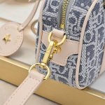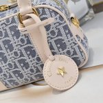 D-Vibe small bowling bag. This casual, sporty bag features a simple yet stylish design. Crafted from blue Obliaue print fabric, it's exquisite and unique, boasting an impressive capacity that easily accommodates a water bottle, phone, and cosmetics. Size: 20.5*13*5cm