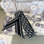 New Letter D This Dior Montaigne Mitzah scarf is inspired by the address of the iconic Dior boutique. The monogram and stripes are classic, slender, with sharp corners at both ends. The back is decorated with a "Christian Dior" logo jacquard stripe pattern.