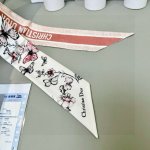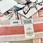 Pdo2416 Dior Mexico Ribbon! The Jouy print cleverly blends butterflies and traditional Mexican flowers for a vibrant and colorful effect. The classic style features a slender shape with pointed ends and a contrasting jacquard stripe pattern with the Christian Dior logo on the back. Ribbons are incredibly versatile: scarves, headbands, bag accessories, belts, and more. Perfect for summer outfits and winter bags, the top-quality silk has a superb lustre and is incredibly beautiful. This one is a must-have. 6x105cm, 100% silk, double-layered, double-sided.