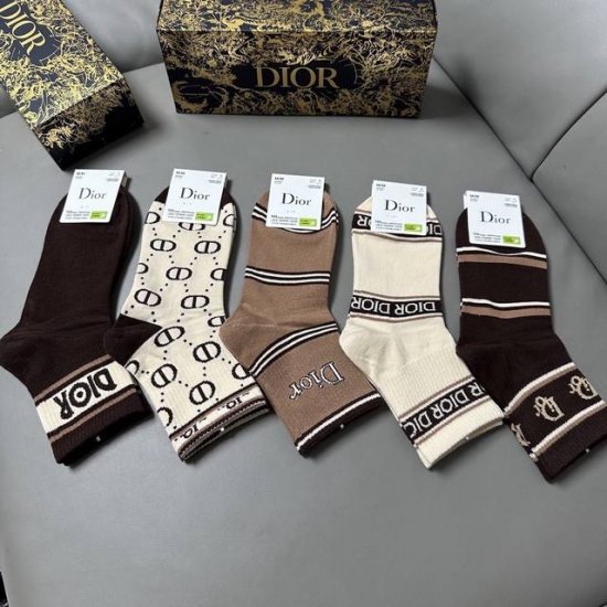 Special Dior women's socks, box of five with jacquard brand logo, simple and elegant, super beautiful in person, a super popular item, a must-have for fashionistas, super easy to match.