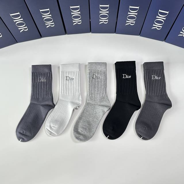 Special packaging from the official store! Dior's new cashmere mid-length slouch socks! Five pairs per box, same style as in official stores, a must-have for trendsetters, super easy to match.