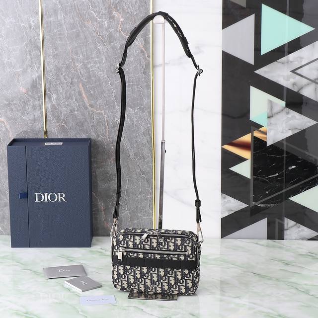 Christian Dior black grained cowhide jacquard adjustable and detachable shoulder strap