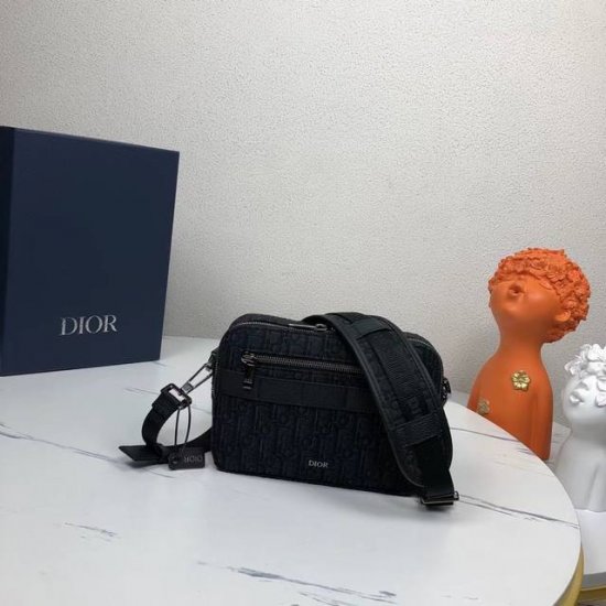A practical and compact style, ideal as an everyday item, the ideal safari messenger bag. Crafted from black Dior Oblique pattern material with black calfskin details. Zippered storage space and front pockets keep daily essentials close at hand, and the adjustable Christian Dior shoulder strap allows for the bag to be carried as a shoulder bag or crossbody.