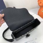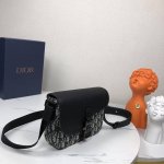 . This saddle bag with a shoulder strap is a new arrival this season, offering a refined and stylish look. Embellished with a beige and black Oblique print, the grained cowhide leather flap highlights the saddle silhouette and is accented with an aluminum buckle. The spacious interior, with its patch pockets, offers ample space for everyday essentials. This mini version features an adjustable leather and Christian Dior signature jacquard strap for shoulder or crossbody wear.