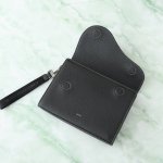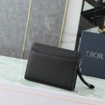 This A5 triangular clutch is a new Dior staple. Crafted from black grained leather and other materials, it features a saddle-shaped flap, a spacious zippered compartment for a phone, and a card slot. It also comes with a detachable wristlet for easy handholding or storage in a handbag.