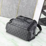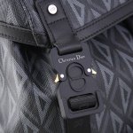This Dior Hit The Road backpack, a new style for this season, blends modern styling with Dior's couture spirit. Crafted from Dior Black Cd Diamond canvas, inspired by Dior's archives, it's embellished with smooth calfskin leather details. It features two nylon jacquard straps with the "Christian Dio" signature, a spacious main compartment, a large front flap pocket, and two side flap pockets. This versatile and practical backpack complements any casual look.