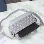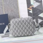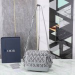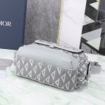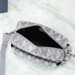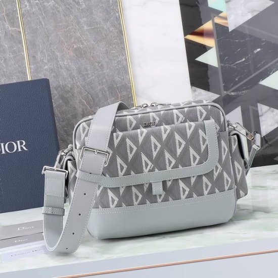 This Dior Hit The Road messenger bag, a new arrival this season, blends modern style with Dior's couture spirit. Expertly crafted from Dior Grey Cd Diamond pattern canvas and smooth calfskin leather, it's embellished with the "Dior" signature on the front. It features a spacious main compartment, a large front flap pocket, and two side flap pockets. The practical design, with an adjustable and detachable shoulder strap, complements any casual look.