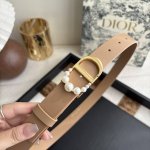 This new Dior belt is crafted from smooth calfskin leather. The classic Cd buckle is presented in a lustrous gold-plated metal version, with white resin beads of varying sizes adorning the C, showcasing Dior's exquisite craftsmanship. The stylish and elegant design can be paired with jeans, skirts, or dresses. Width 2.5cm DDD