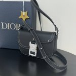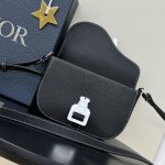 . This Saddle Flap Messenger Bag features a sleek design and a flap, elevating the Saddle collection with refined elegance. Expertly crafted from black grained cowhide leather with contrasting topstitching, the saddle flap is embellished with the Christian Dior signature aluminum buckle. This miniature style features a detachable and adjustable leather shoulder strap for hand, shoulder, or crossbody wear.