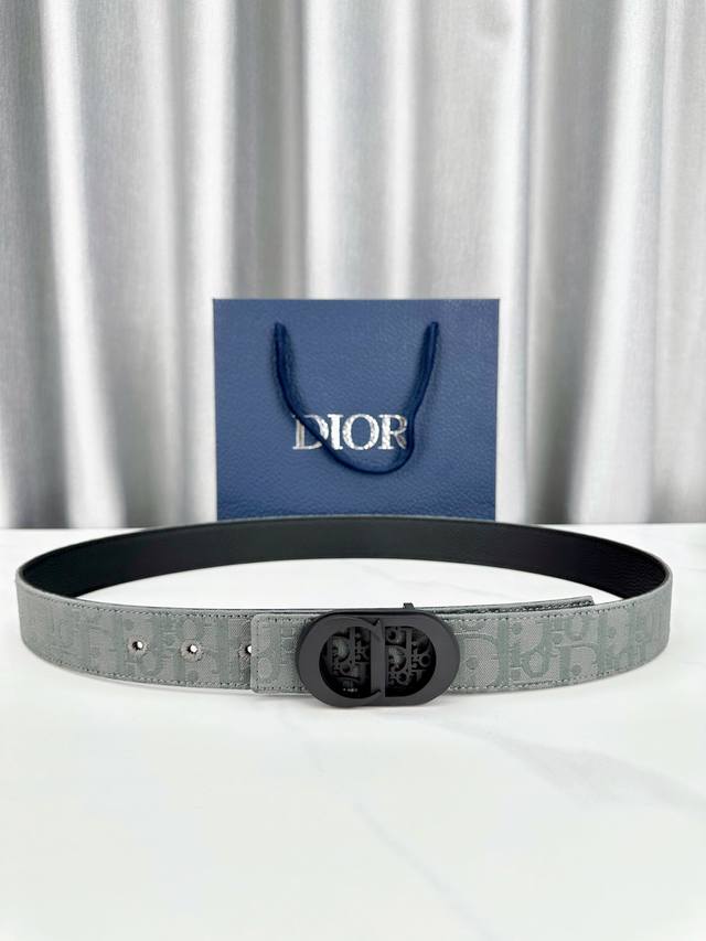 Width 3.5cm This Dior 35mm reversible belt combines elegant sophistication with modern style. The reversible design features one side in charcoal grey Oblique printed fabric and the other in tonal grained cowhide leather. It can be paired with various 35mm stainless steel belt buckles to create a unique and stylish piece. DDD