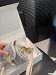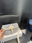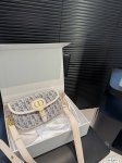 with foldable box Dior underarm bag raffia straw light blue with beige shoulder strap is so beautiful. This color combination is very spring and summer, more youthful
