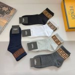 A box of 5 pairs of Fendi new mid-calf men's socks, including packaging. Made of pure cotton, a must-have for trendsetters. Classic double F design, stylish and versatile. You deserve to own them!
