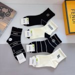 Box of 5 pairs (with packaging) - Fendi classic double-F mid-calf socks, pure cotton, a must-have for trendsetters, stylish and versatile, you deserve to own them!