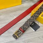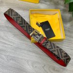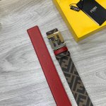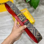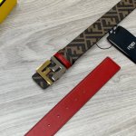 Comes with full packaging gift box DDD Fendi boutique style, 4.0cm wide, double-ring reversible belt, Ff snap fastener, bright red Cuoio Romano leather, reverse side with tobacco yellow and black Ff pattern, square full diamond metal embellishment, fashionable, classic and versatile style DDD
