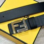 Fendi 40mm wide double-sided original calfskin leather with a single ruthenium p