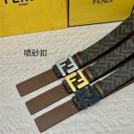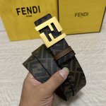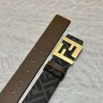 Fendi boutique style, 4.0cm wide, double-ring reversible belt, Ff snap fastener, coffee-colored Cuio Romano leather, reverse side with tobacco yellow and black Ff pattern, square metal trim, fashionable, classic, and versatile.