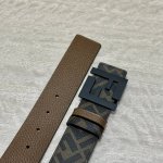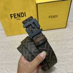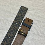 Fendi boutique style, 4.0cm wide, double-ring reversible belt with snap fasteners, coffee-colored Cuio Romano leather, reverse side with tobacco yellow and black Ff pattern, square metal trim, fashionable, classic, and versatile.