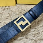 Fendi boutique style, 4.0cm wide, double-ring reversible belt with snap fasteners, black Cuoio Romano leather, reverse side with tobacco yellow and black Ff pattern, square metal trim, fashionable, classic, and versatile.