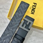 Fendi boutique style, 4.0cm wide, double-ring reversible belt with snap fasteners, black Cuoio Romano leather, reverse side with tobacco yellow and black Ff pattern, black enamel metal finish, fashionable, classic, and versatile .