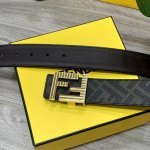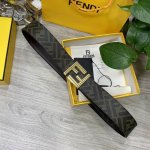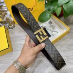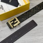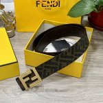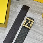 Fendi Fendi counter same style double ring reversible belt Ff press stud buckle brown Cuoio Romano leather reverse fabric with tobacco yellow and black Ff pattern black enamel metal finish fashionable classic versatile style
