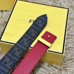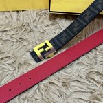 Full Packaging, Same Style as in Boutique, 4.0cm Wide, Double Ring Reversible Belt, FF Snap Buckle, Black Cuoio Romano Leather, Reverse Fabric with Tobacco Yellow and Black FF Pattern, Square Metal Finish, Fashionable, Classic, and Versatile