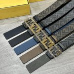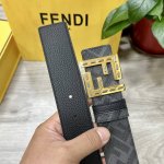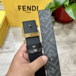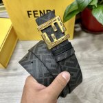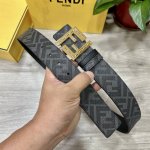 Fendi Same style as the Fendi counter. 4.0cm wide. Double loop reversible belt. Ff press stud closure. Made of black Cuoio Romano leather. Reverse fabric features tobacco yellow and black Ff pattern. Black enamel metal finish. Fashionable, classic and versatile.