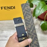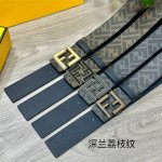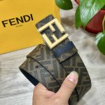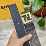 Fendi Fendi counter same style width 4.0Cm double ring reversible belt Ff press stud buckle dark blue Cuoio Romano leather material reverse fabric with tobacco yellow and black Ff pattern square metal finish fashionable classic all-match style