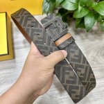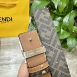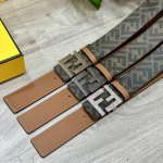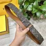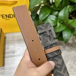 Fendi Fendi counter same style width 4.0Cm double ring reversible belt Ff press stud buckle khaki Cuoio Romano leather material reverse fabric with tobacco yellow and black Ff pattern square metal finish fashionable classic all-match style
