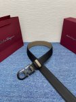 Description: This belt, crafted from embossed cowhide leather, exudes urban chic with dynamic details. A tonal metal Gancini buckle with contrasting lining adds a modern touch. This accessory is reversible and can be adjusted to the perfect waist.