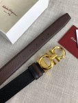 Comes with full packaging. Ferragamo L reversible adjustable leather belt with glossy palladium Gancini double buckles, adding a touch of sophistication to an elegant look. Black with brown accents, reversible. This belt is adjustable and can be cut to fit a slimming effect.