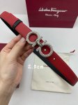 / Ferragamo 25mm metal Gancio double buckle, women's double-sided cowhide leather,