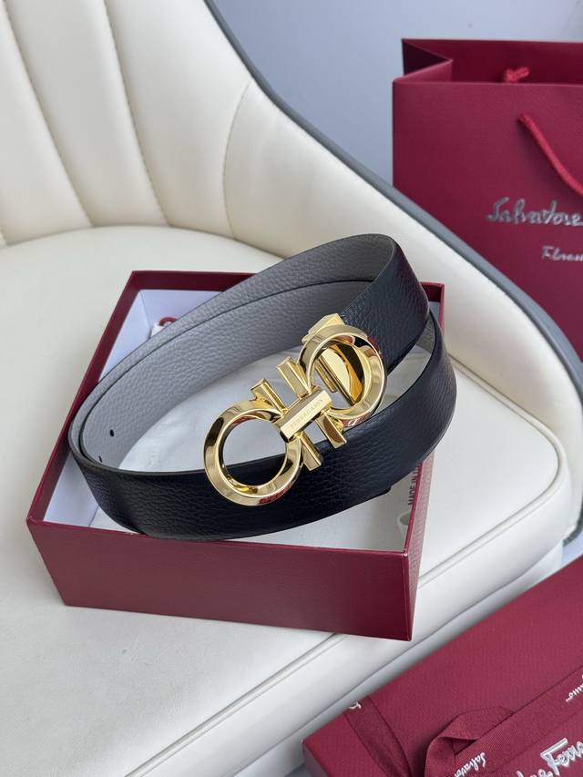 Ferragamo Double-Sided Original Imported Top Layer Cowhide Double-Sided Use Vacuum Electroplated Copper Buckle Exquisite Workmanship Counter Quality Fashion Casual All-Match Hot Selling Mid-Range Counter Full Set Packaging Width 3.5