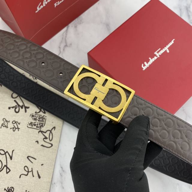 / Ferragamo Men's Double-Sided Leather Belt 38mm. Double-sided imported patterned
