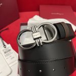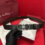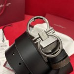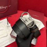 Ferragamo Reversible Italian Import Original Black Belt with Brand New Palladium-plated Buckle, 35mm Width, Adjustable and Can Be Cut to Achieve a Slim Fit.