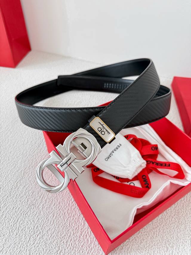 Material: 100% top-grain cowhide, guaranteed genuine leather. 24K pure steel buckle, same quality as boutiques, original classic carbon fiber pattern top-grain plain leather base, silver buckle, classic logo made of pure steel, belt body can be freely cut, a top choice for gifting or personal use