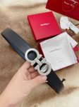 This Ferragamo belt features a modern take on the classic Gancini buckle. Double-sided, it can be used with either side, with two colors to match. One side is black, the other is blue. Made of imported Italian cowhide. Adjustable to fit waist widths up to 3.5cm.
