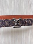 Flowergram Reversible Belt: This belt combines Monogram canvas and Monogram embossed leather for a dual-style look. A delicate, jewel-like buckle pays homage to the Monogram flower, adding an elegant touch to any outfit. Features a classic silver double-pointed buckle in tan lychee grain. (